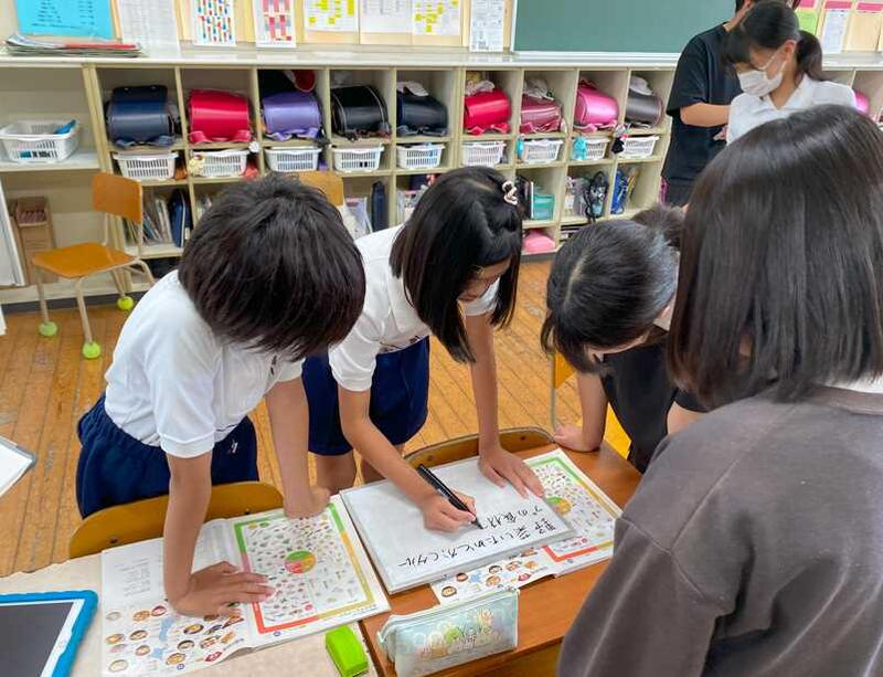 家庭科(朝食から健康な1日の生活を)の公開授業がありました。朝食の役割や栄養バランスがよい食事について考えました。食事に含まれる栄養素を3つのグループに分ける活動を通してバランスのよい食事を視覚的に確認していきました。平島先生は普段の授業の中で全員発言を目標とされています。この授業の中でも発問の工夫や話合いの場の工夫(ペア・グループ)を行い、全員が発言できる主体的で協働的な学びの姿を追求されていました。