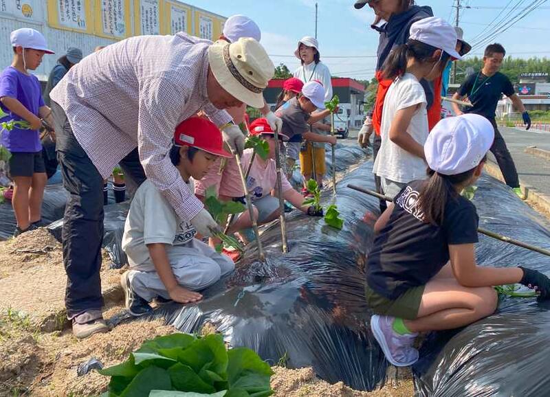 2年生が生活科の学習でいもの苗植えを行いました。八幡地区協議会の方々に協力していただきました。いもの他に花の苗も植えました。のばらハッピーガーデンが美しく明るい感じになりました。これから子どもたちと共に水かけなどのお世話や観察を頑張っていきます。