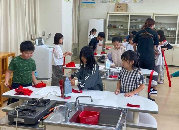 4年生が運動会のソーラン節で使用した鉢巻きにアイロンがけをしていました。運動会は踊って終わりではなく、来年使う友達の事を考えて、きれいに整えて後片づけするところまでが勉強ですね。初めてアイロンがけをする子どももいたようです。やけどに気を付けながら一生けん命、丁寧に頑張っていました。
