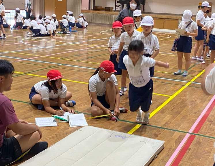 1・4・6年生で体力テストがありました。体力テストはボール投げ、立ち幅跳び、長座体前屈、反復横跳び、上体起こし、50m走、シャトルラン、握力の8種目があります。今日はそのうち4種目を測定しました。後日、子どもたちに結果を示し、自己分析及び考察をさせます。自分自身の体力に関心を持たせることで、日々の体力づくりにつなげていきたいと思います。明後日は2・3・5年生が実施します。