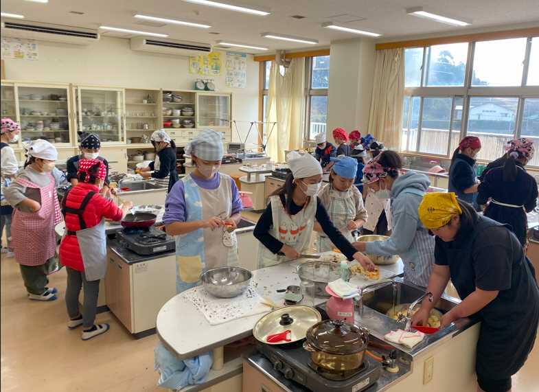 一覧へ 1. いも料理に挑戦(5年生) 投稿日時: 2024/12/18 学校サイト管理者 5年生が学級園で収穫したさつまいもを使って料理に挑戦しました。「大学いも」「いものてんぷら」「いも餅」「いもチップス」など友達の協力しながら楽しそうに調理する様子がありました。少し、試食をさせてもらいましたが、とてもおいしかったです。家庭でもチャレンジしてみるといいですね。