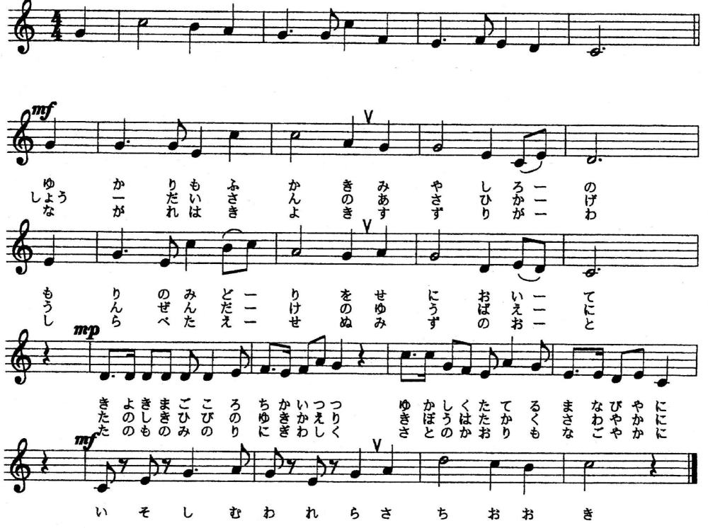 1 ゆかりも深き みやしろの 森のみどりを せにおいて 清きまごころ ちかいつつ ゆかしくたてる まなびやに いそしむわれら 幸多き 2 小岱山の 朝日影 雲仙岳の 夕映えに たのしき日々の ゆきかえり 希望は高く さわやかに いそしむわれら 幸多き 3 流れは清き すずり川 しらべたえせぬ 水の音 田のものみのり にぎわしく さとの香りも なごやかに いそしむわれら 幸多き | |||||