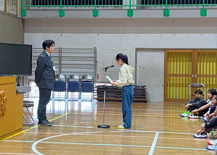 今日で後期前半が終了しました。この期間は修学旅行・見学旅行、陸上記録会など様々な行事がありました。多くの事を学び、思い出もたくさんできたことと思います。今日は、冬休み前集会で1年の振り返りと新年に向けての作文発表や校長先生からのお話がありました。また、様々なコンクール等で入賞した児童の表彰も行いました。明日から13日間の冬休みです。しっかり計画を立てて有意義なものとしてほしいと思います。また、感染症などの病気の予防と絶対に交通事故にあわないよう交通ルールや学校のきまり守るようご家庭でもお声掛けをお願いします。よいお年をお迎えください。
