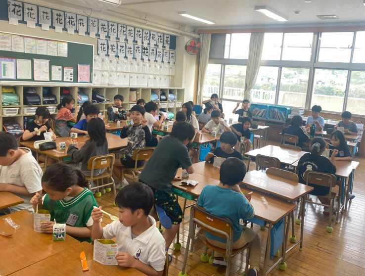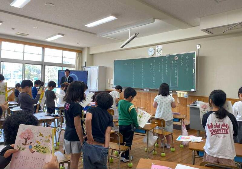 3年生は総合的な学習の時間に「荒尾梨はかせになろう」という学習をしています。今日は、梨の農家の方をゲストティーチャーとしてお招きし、説明を聴いたり質問をしたりしていました。逆に荒尾梨を活用した商品開発についてのアイデアを子どもたちに尋ねられる場面がありました。子どもたちの自由な発想によるアイデアを真剣にメモに取られている様子もありました。実際に子どもたちのアイデアを生かした商品が誕生するかもしれません。そうなったらうれしいですね。