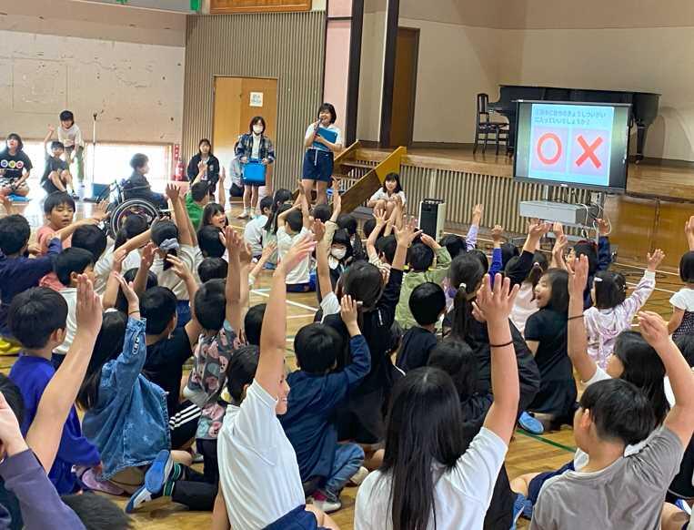 高学年・中学年でそれぞれ人権集会が行われました。各学級の代表児童が人権学習を通して学んだことを自分の経験と重ねて発表しました。みんなの前で自分のことを伝えることはとても勇気のいることです。発表者以外の子どもたちは真剣に耳を傾け、発表者の思いに応えようと、心を込めたお返しを伝えることができていました。全ての発表に共通してた事は「言葉」です。言葉は人を元気にする力もありますが、使い方によっては人の心を傷つけ、悲しませることにつながることもあります。日頃、友達や家族との会話の中で使っている「言葉」について振り返るよい機会になりました。