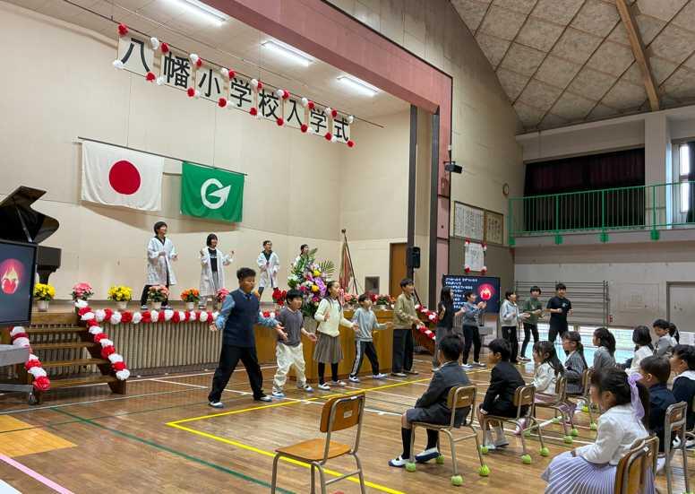 本日、入学式が行われ、28名の新入生を迎えました。この入学式を迎えるにあたって、昨日は5・6年生が会場設営等の準備を頑張ってくれました。本日も在校生を代表して5・6年生が式に参加し、歓迎の言葉(寸劇)や歌を発表してくれました。入退場のエスコートも優しく丁寧に頑張ってくれました。その思いに応えるかのように、新入生も名前を呼ばれると「はいっ」と元気よく返事をすることができました。明日からは登校班による登校や給食など本格的に学校生活が始まります。スムーズなスタートが切れるよう、みんなで協力して頑張っていきましょう。
