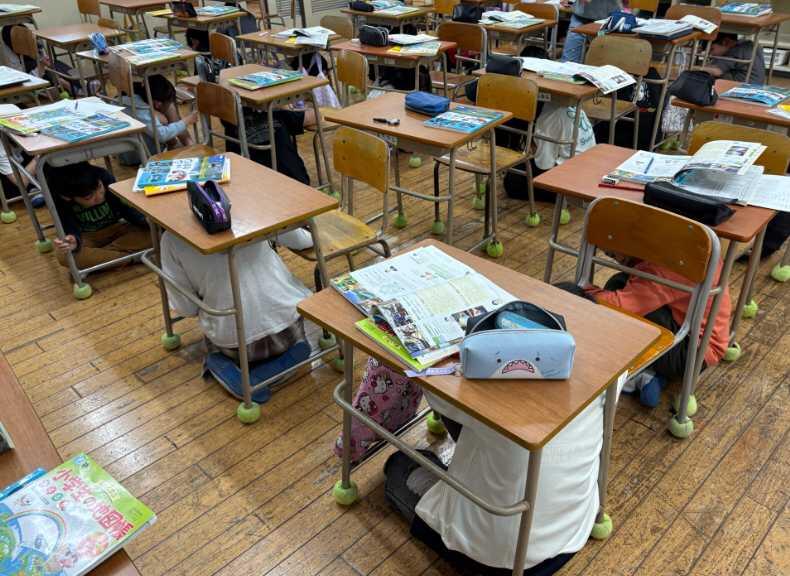 4月は熊本防災教育月間です。今日は、シェイクアウト訓練と防災給食(救給カレーと牛乳)を実施しました。シェイクアウト訓練では、緊急地震速報の音を放送で流し、担任の指示ですばやく机の下にもぐり、揺れが収まるまで身を守る訓練をしました。熊本地震では余震を繰り返したことから、机の下に素早くもぐる動作を2回行いました。おしゃべりなどすることなく、真剣な態度で訓練に臨むことができていました。防災給食も少し冷たく食べにくさのある救給カレーでしたが、感謝して食べることができました。ご家庭でも防災について話題にしていただきたいと思います。