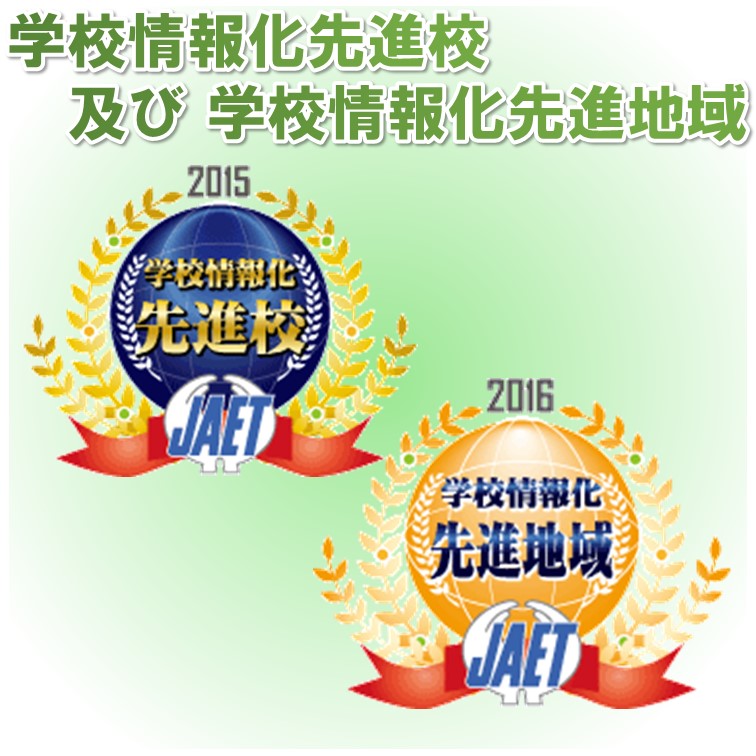 「学校情報化先進校」 2015年認定 「学校情報化先進地域」2016年認定