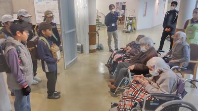 11日(木)に5年生が総合的な学習の時間に作ったもち米を、章鹿倉保育園、山江保育園、つつじの里にプレゼントしました。