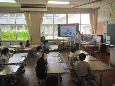21日に5年生が「環境出前講座」を行いました。熊本県環境立件推進課から講師の先生に来ていただき、「水」を中心に環境問題について学びました。前半は説明とクイズを中心に学習し、後半は実験を行って「生活から出る水の汚れ」について考えました。実験の結果、講師の先生が用意された山江村を流れる「山田川」の水がとてもきれいだということがわかり感動していました。みんなできれいな川、美しい山江村を守っていきましょう。