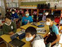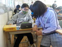 26日(木)に5年生は家庭科の学習でトートバック作りを行いました。ゲストティーチャーとして山江村の婦人会の方々に協力してもらいながら作っています。