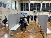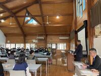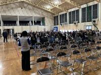山江村体育館での練習(6年生)・式典準備