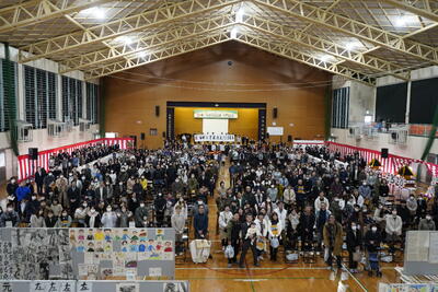 山江村体育館には、たくさんの保護者や地域の方に来ていただき、児童の1年間の成長の姿を見ていただきました。