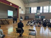 まず、山江中学校の教育課程や生活のきまり、部活動等について説明があり、その後ネットの安全利用に関する講話を聴きました。