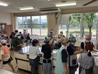 金剛小学校の体育館に移動し、みんなで昼食を食べました。