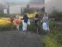 無事に稲刈りができるように、案山子が見守ってくれることでしょう。