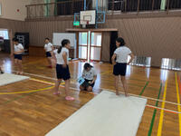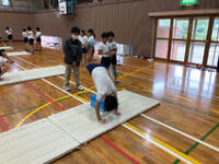 6年生は体育科の学習でマット運動に取り組んでいます。