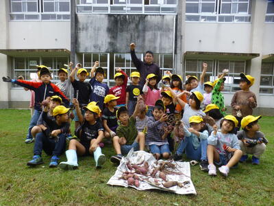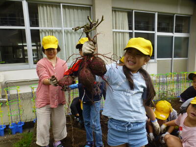 月曜日、どれだけ芋がなっているか、ドキドキわくわくしながら畑を掘りました。