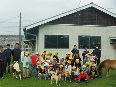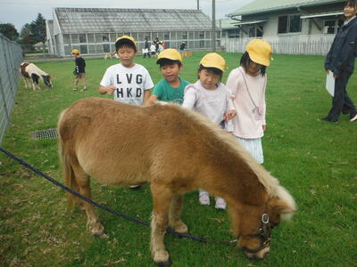 1年生が楽しみにしていた動物とのふれあい学習、天気が心配でしたが、テルテル坊主効果でしょうか。雨も降らず、無事活動できました。