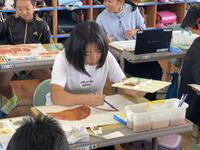 6年生の図画工作科で山江栗をテーマに絵を描きました。ゲストティーチャーをお招きし、構図や筆使い、彩色などご指導いただきました。個性豊かな作品に仕上がりました。