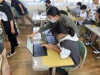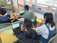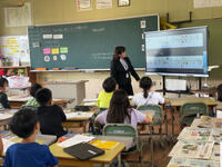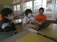 本校の新たな取組として、朝の時間に「縦割り学習」に取り組んでいます。高学年では、6年生がプレゼンテーション資料の作成のしかたを5年生に教えていました。伝えたい内容を簡潔に示すことや、アニメーションを効果的に使うことなど、これまでの学習で身に付けてきたノウハウを優しく伝えていました。今後ますます活動を充実させていきたいです。