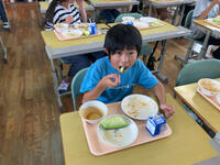 給食に山江のメロンが出されました。子供達はみんな大興奮。とても美味しそうに食べていました。いつもおいしい野菜や果物を提供してくださる生産者の方々に感謝です。今日もありがとうございました。