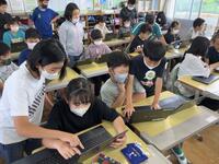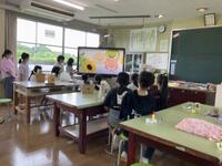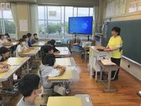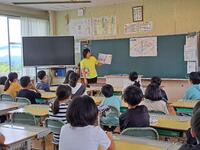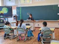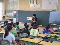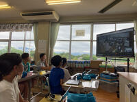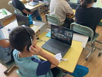 5年生の外国語の学習で、万江小学校の5・6年生とオンラインで交流しました。学びたい教科や自分が考えた時間割を紹介する内容で、これまで学習してきた表現を使って会話をしました。慣れない状況でしたが、子どもたちは積極的にコミュニケーションを図り、活発にやり取りをしていました。9月の集団宿泊教室も合同で行うので、今後も交流学習の機会を設定していきたいです。