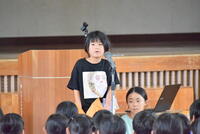 まず、2年生・4年生・6年生の代表が、夏休みの思い出や2学期の目標を発表しました。夏休みを楽しく過ごした様子や2学期に頑張りたいことがよくわかる発表でした。