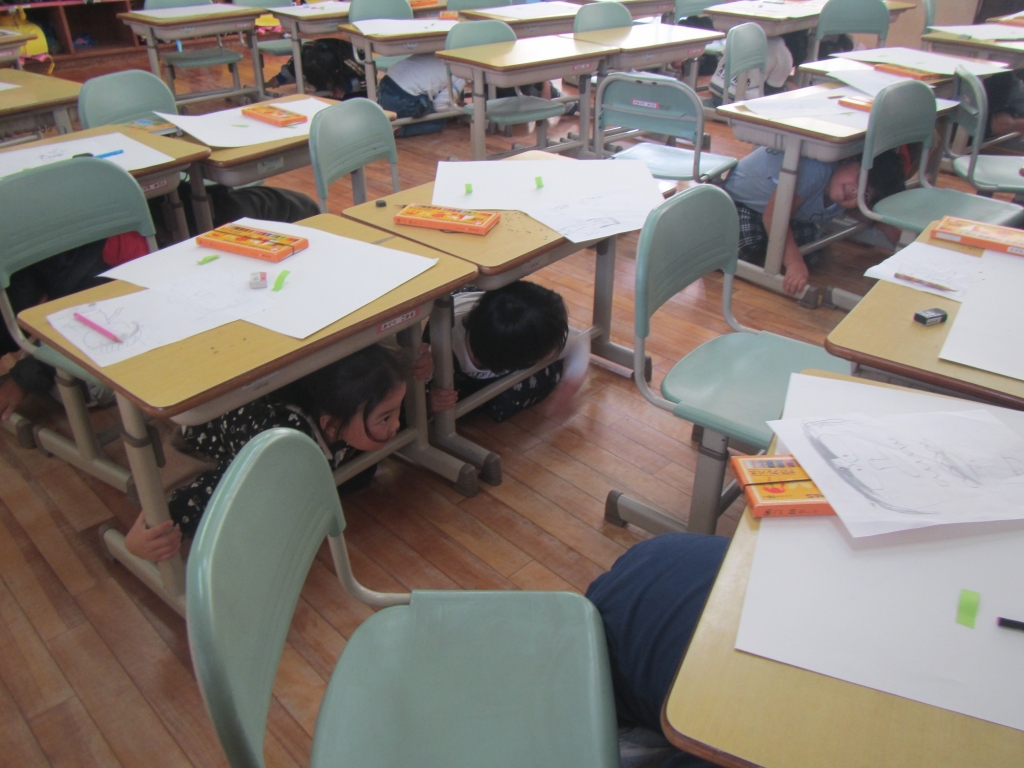 シェイクアウト訓練後には、各クラスでしっかりと事後指導も行いました!!