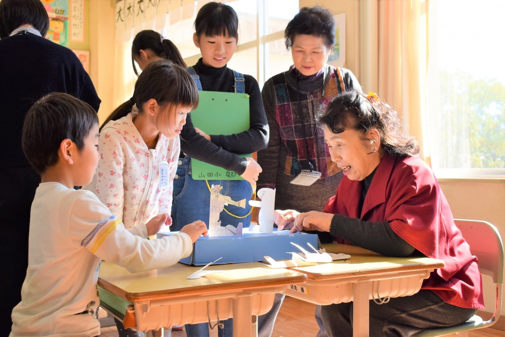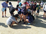 山田小学校では、全校児童が参加して「大玉転がし」に取り組みました。