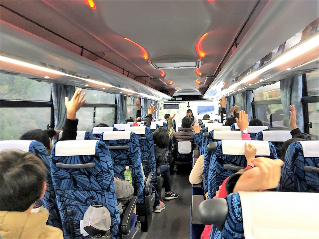 修学旅行には、おとなり万江小学校の子どもたちと一緒に行っています。