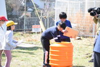 昼食後、中央グラウンドに移動し、植樹とタイムカプセルセレモニーを行いました。