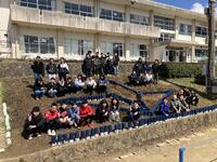 校舎に向かって左側には芝生を張るとともに寒椿を植え、向かって右側には山江村の村章をつくりました。