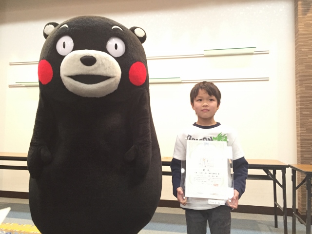 表彰式に参加した子どもたちは、多少緊張気味でしたが、堂々と表彰を受けることができました。最後には、くまモン登場のサプライズもあり記念撮影をして楽しみました。
