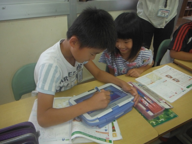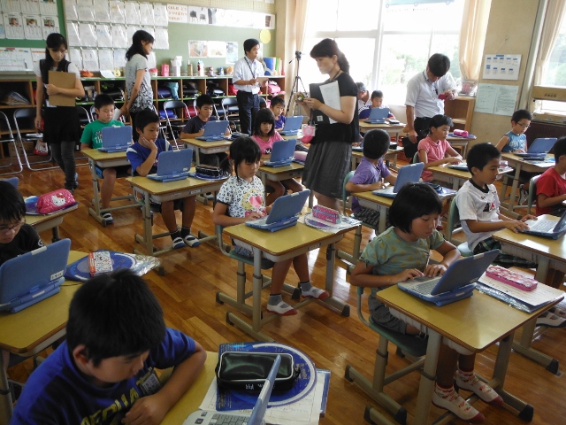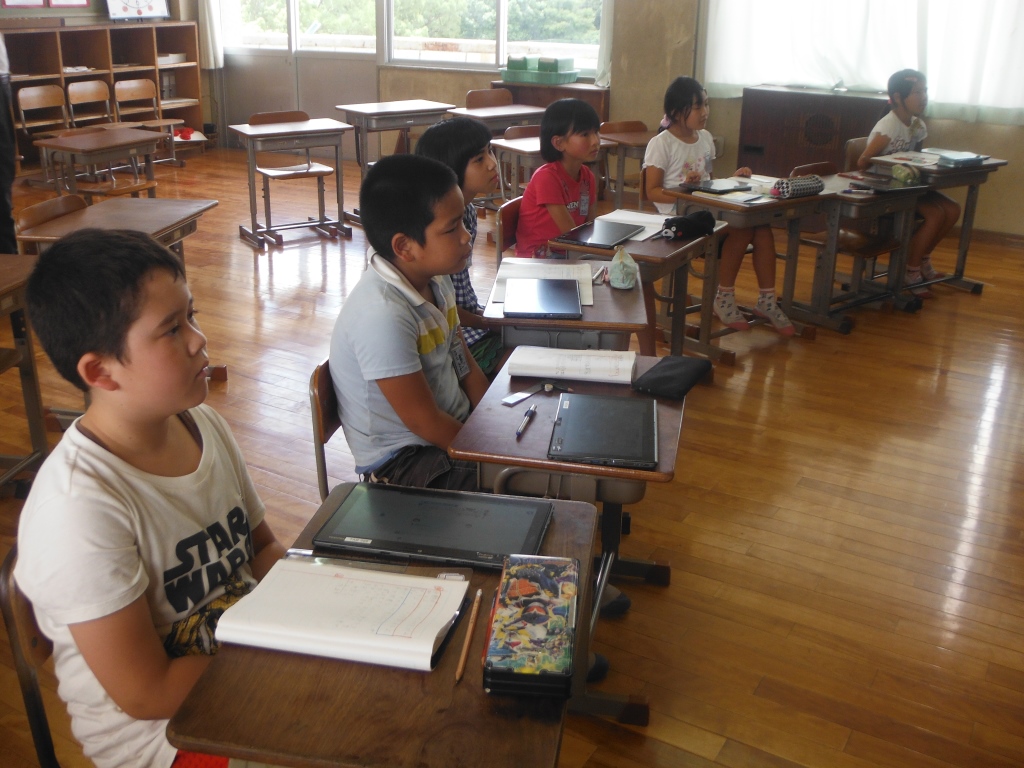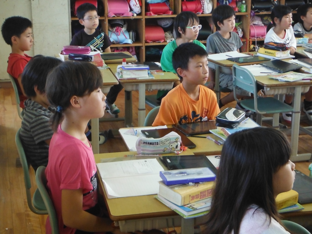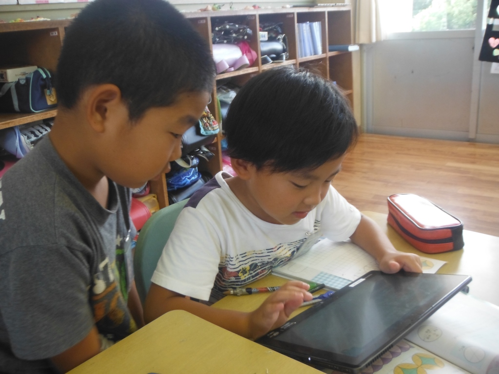 使い始めたばかりの低学年にとっては、タブレットPCそのものへ興味が向きやすく,逆に学習を阻害してしまうことがあります。目的を持たせ必要な場面以外は手元に置かないようにしながら,これからも活用を進めていきたいと考えています。