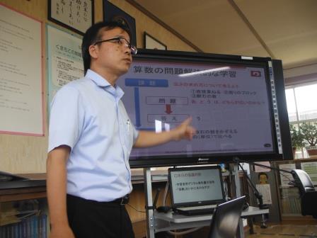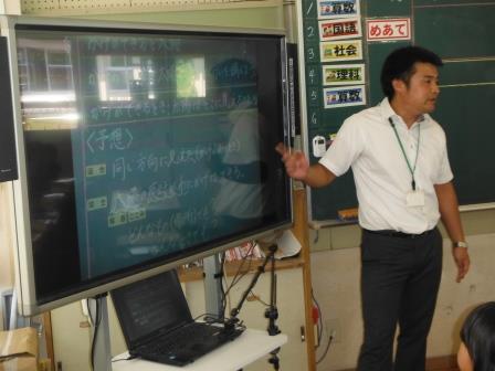単元は「ありの行列」でした。今回の授業は、「段落の中心となる文や語句を読み取り、研究の成果を読み取ること」でした。電子黒板やタブレットPCなどを活用し、グループや全体で意見の共有を図りました。児童が、意欲的に発言したり、ノートにまとめたりしていました。今回の授業は、今後の校内研修の提案となる、貴重な授業となりました。