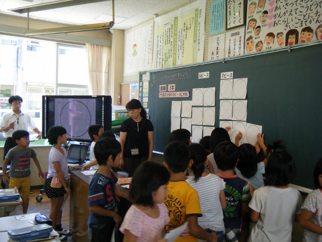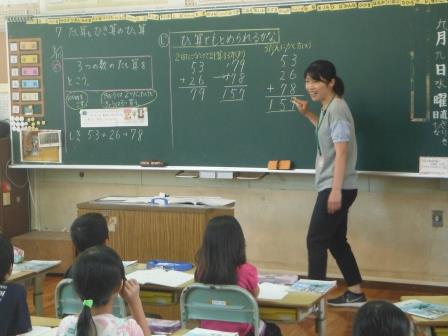 本校では、今年度から「小研ウィーク」という取組を行っています。月に一度、お互いの授業を見せ合い、全職員で研究の方向性を確認し合い、授業力を高めていこうという取組です。そして、今回初めてとなる授業は2年算数科堤先生の授業でした。2年生の子どもたちが電子黒板を使って分かりやすく説明をし、一生懸命課題解決に挑む姿がとてもすばらしい授業となりました。今週は全担任が小研ウィークの授業に取り組む予定です。