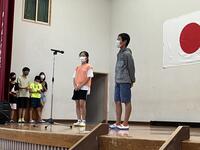 代表児童の発表です。夏休みの思い出や2学期の目標などを、原稿を見ることなく発表できました。