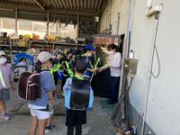 最後は消防自動車見学です。救急車、ハシゴ車、化学車、ブロアー車、支援車、そしてやっぱりポンプ車。中でも一番高い支援車は4億円するそうです。とても貴重な体験ができました。今から山江に向かって出発します。