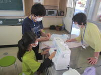 サイエンスクラブ:今日はスライム作りに挑戦です。 ハンドメイドクラブ:刺繡糸を使ってきれいな紐を作ります。