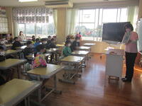 本日の朝はよみっこタイムでした。「やまえおはなしグループ おひさま」の皆さん8名に各クラスに分かれて絵本を読んでいただきました。今月は動物愛護週間もあることから、学校からのお願いで動物愛護をテーマにした絵本が中心でした。5年児童は物語を聴いて「動物を飼うということはその命に最後まで責任を持つことだと思う。」と感想を述べていました。全校児童が「命の大切さ」についてしっかりと考えることができた15分間でした。