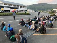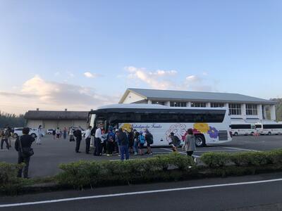 宮原SAで休憩です。みんなとても元気です。これから熊本港に向かいます。
