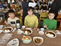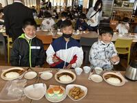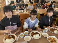 給食では、実際に災害食を頂きました。 児童は、美味しそうに救給カレーを食べていました。