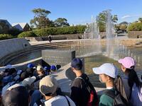 二の丸でお弁当を食べて午後からのエネルギーを補給しました。食べた子どもから走り回って遊んでいます。せっかく補給した元気を使い果たす勢いです。この後、防災センターへ向かいます。