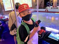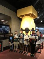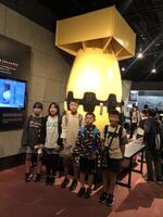 熊本地震の写真を見て説明を受けたあと、地震体験コーナーに来ました。震度2から7までの地震を体験できます。震度5以上では立っていることも困難です。伏せて頭を守ります。収まった後はゆっくりと頭を上げて周囲を確かめてから安全な所へ移動することを学びました。