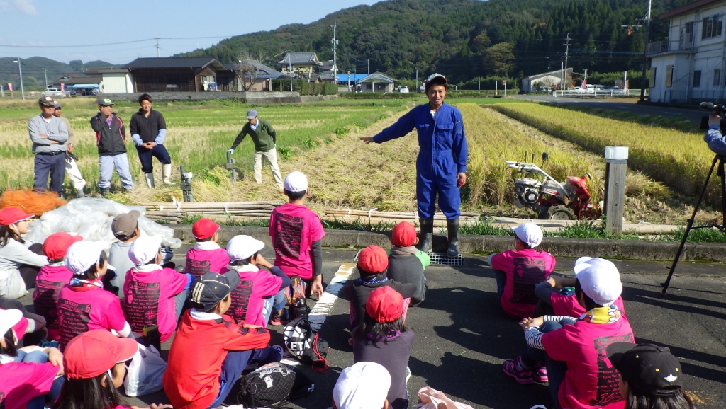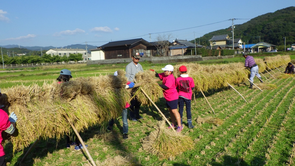 稲刈りをしました(5年生) 投稿日時 : 2017/11/06 5年生 11月6日(月) 今日は5年生が稲刈りをしました。鎌を上手に使い、丁寧に稲を刈ることができていました。子どもたちからは、「初めて稲刈りをしましたが、上手に刈り取ることができてよかったです。」と、収穫の喜びを感じている様子でした。