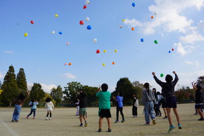 自分たちが育てた種が、どこかでまたきれいな花を咲かせることを願って、バルーンリリースも行いました。