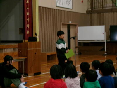 終業式ではまず、1・3・5年生の代表の児童が2学期の思い出を発表しました。