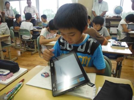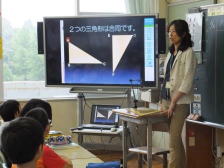 5年生算数科の授業者は古賀先生でした。5年生では合同な三角形の描き方について考える授業でした。子どもたちは解決の見通しをもった後、一人一台のタブレット端末で合同な三角形を描く手順をプレゼン形式でまとめました。プレゼン形式でまとめることで合同な三角形の描き方を順序立てて説明することができ、より分かりやすく伝えることを意識して活動することができました。授業研究会では今後の方向性について山本主幹にご助言をいただき、さらなる研究の深まりを目指して全職員で気持ちを一つにすることができました。