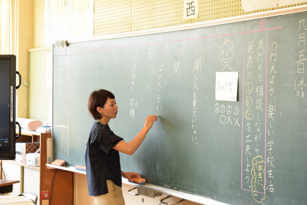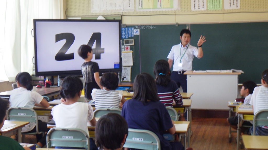 午前中は、万江小学校、山田小学校で研究授業が行われました。(写真は山田小学校での授業の様子)